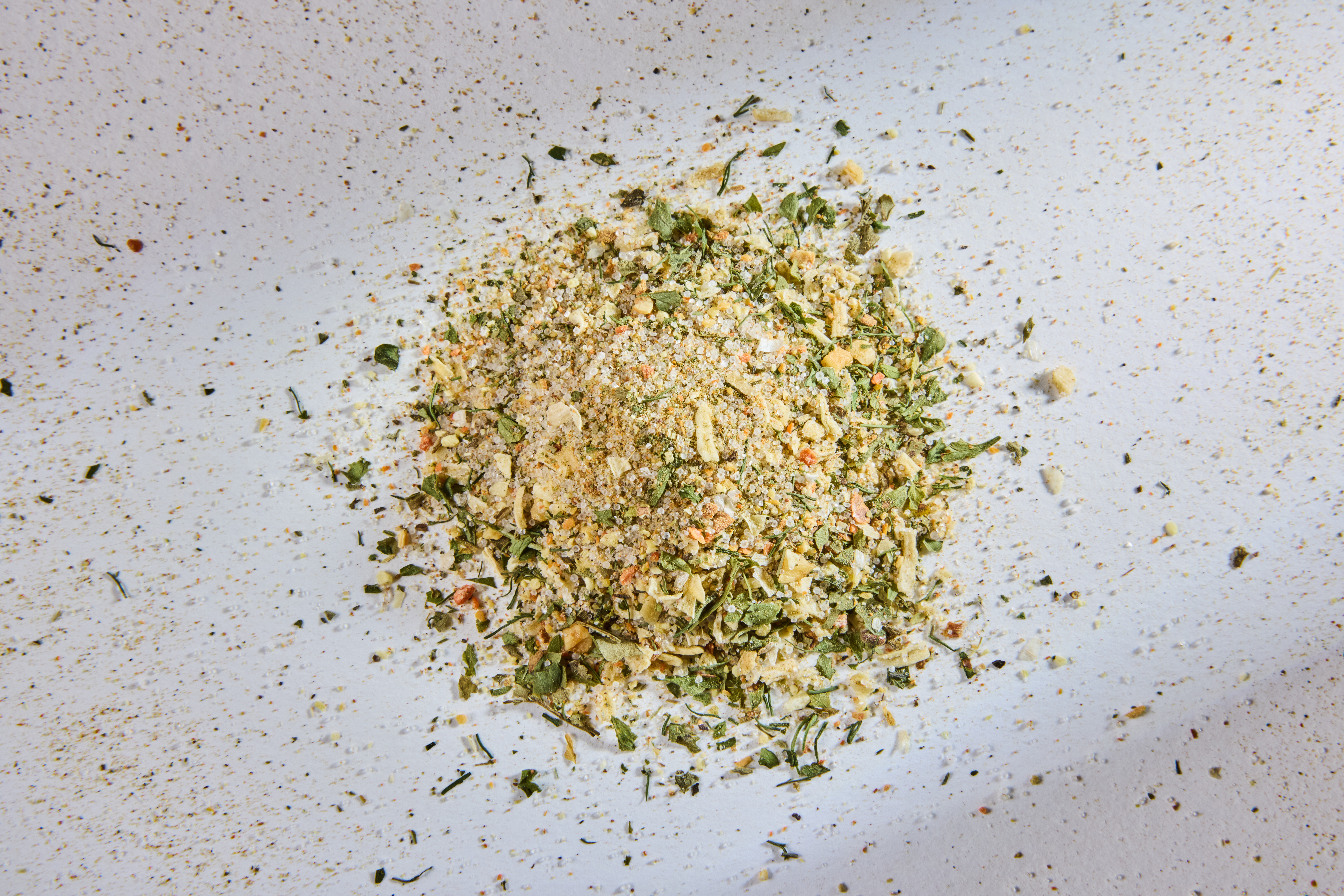 Abgerundet wird die Mischung durch edle Gewürze wie Muskat, Curcuma, Bockshornklee, Steinpilzpulver und Sumach, die Tiefe und Komplexität verleihen. Ein Hauch von Senfmehl, Cayennepfeffer, Chili und Pfeffer bringt eine angenehme Schärfe ins Spiel, während Dill, Petersilie, Liebstöckel und ein feiner 9-Kräuter-Mix für Frische und Balance sorgen.